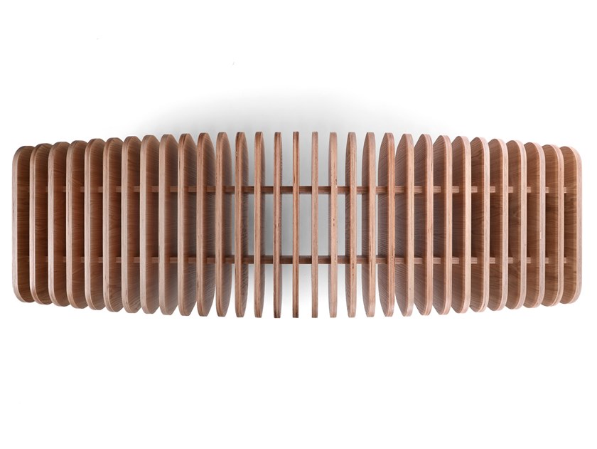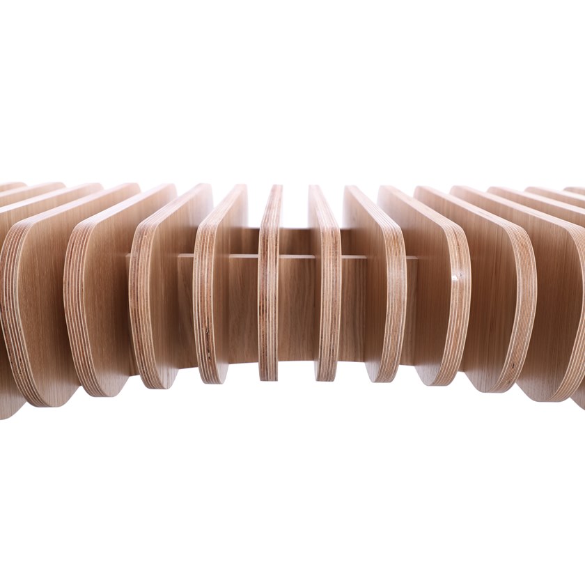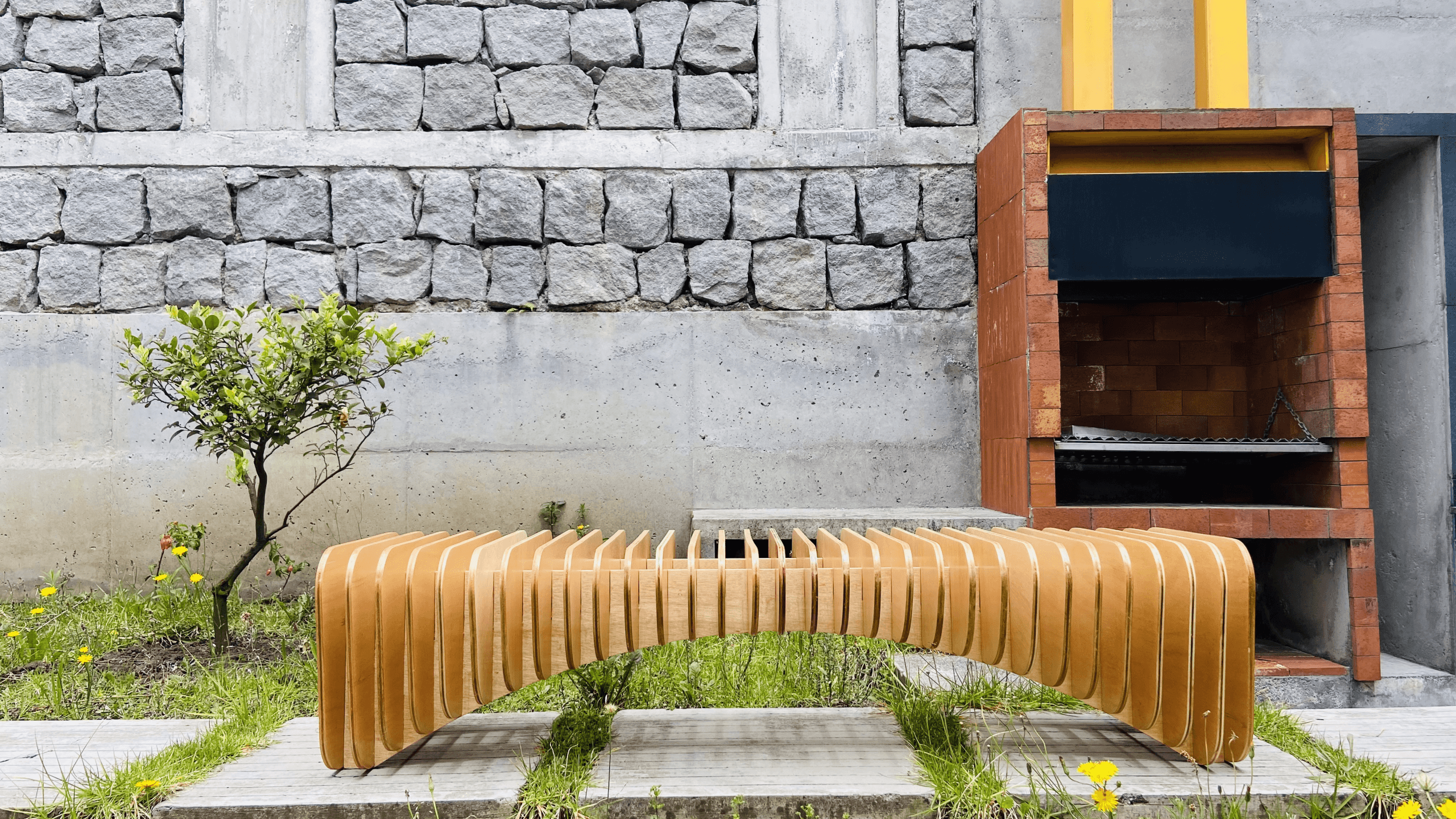 Se trata de un banco o mesa de centro contemporáneo fabricado con madera de alta calidad. El diseño presenta líneas onduladas y repetitivas que crean una estructura en forma de “Arco”, ofreciendo un aspecto moderno y sofisticado. La madera, con sus vetas naturales, le da un toque cálido y orgánico al producto. Los extremos del banco son sólidos, mientras que el centro juega con espacios vacíos, creando un efecto visual atractivo y permitiendo una ligereza visual. Este mueble no sólo es funcional sino también una pieza de declaración artística, perfecta para espacios modernos que buscan un toque distintivo y elegante.