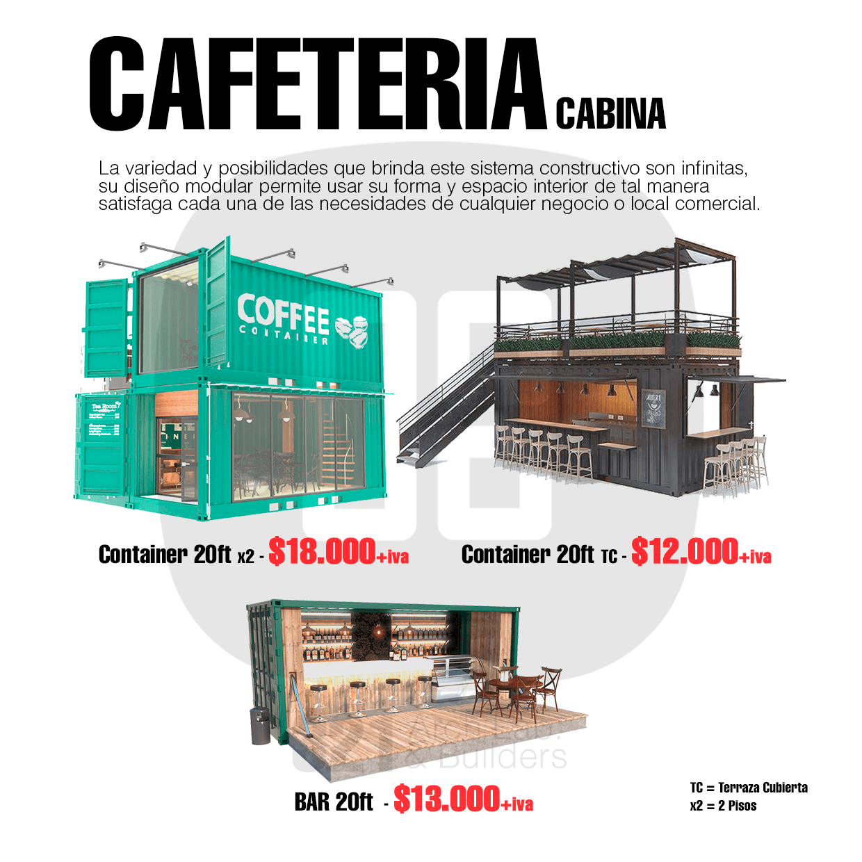 - Posibilidad de añadir variantes como oficina, cafetería, laboratorio, entre otros.