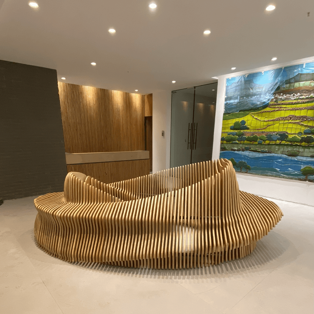 Diseñada y fabricada artesanalmente por expertos en diseño computacional y carpintería fina, cada Donut Bench es una obra única, construida por módulos de madera con ensamblaje preciso y acabados de alta gama.